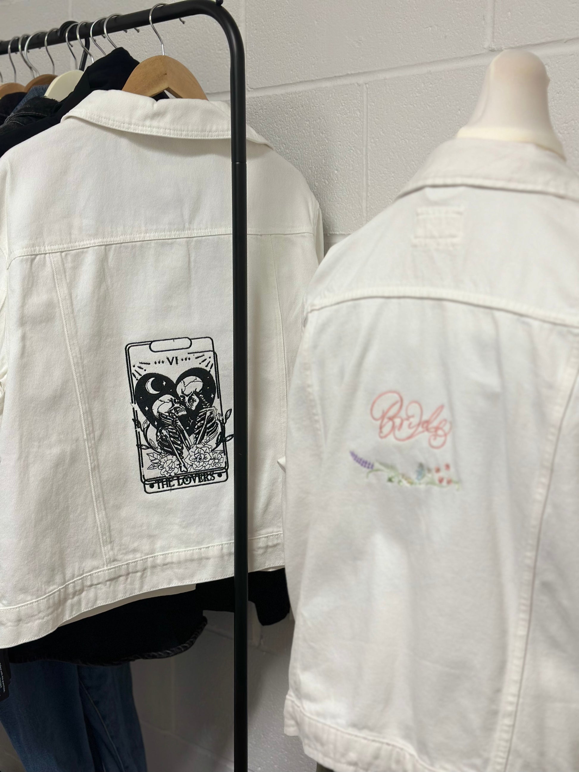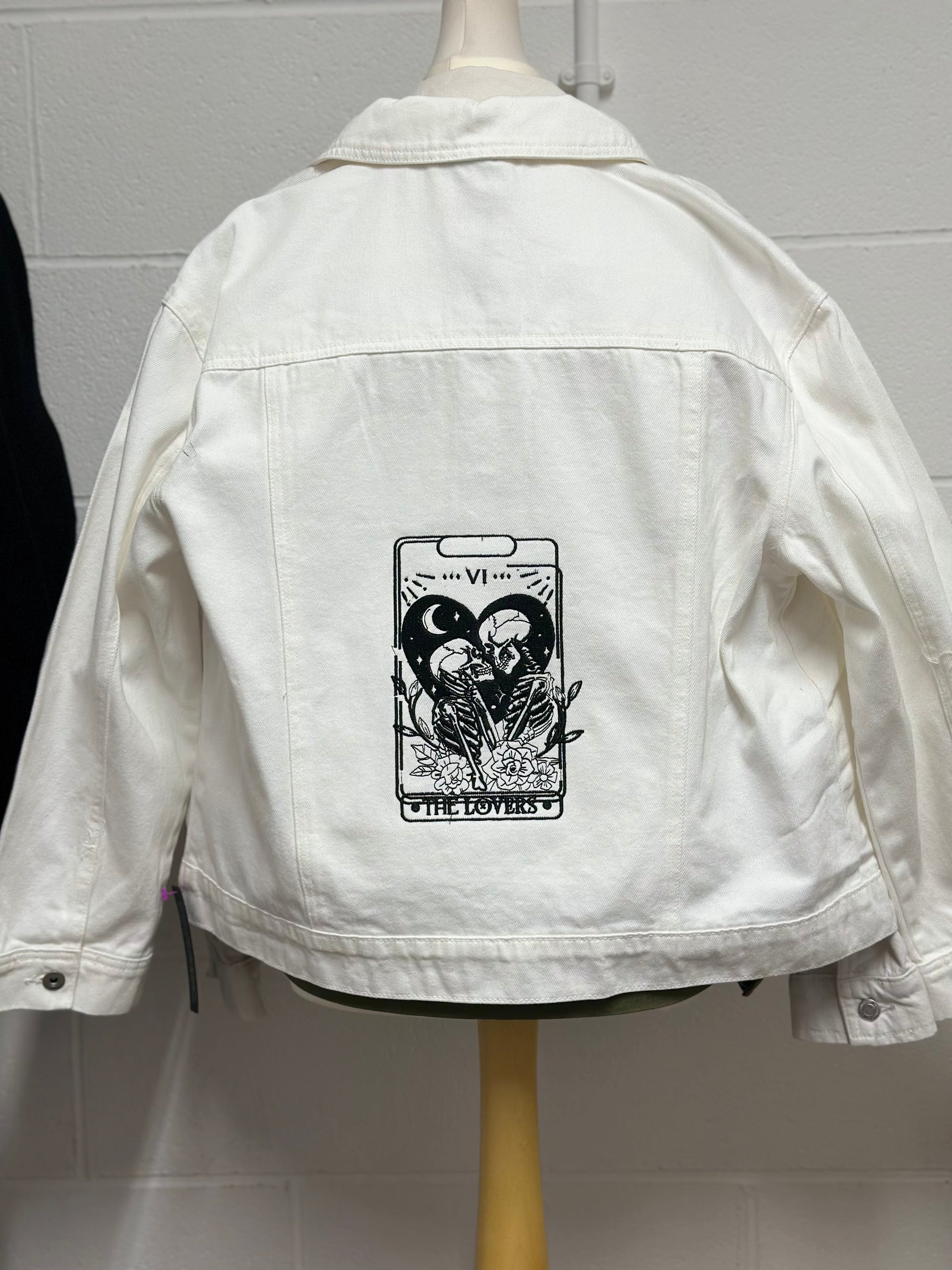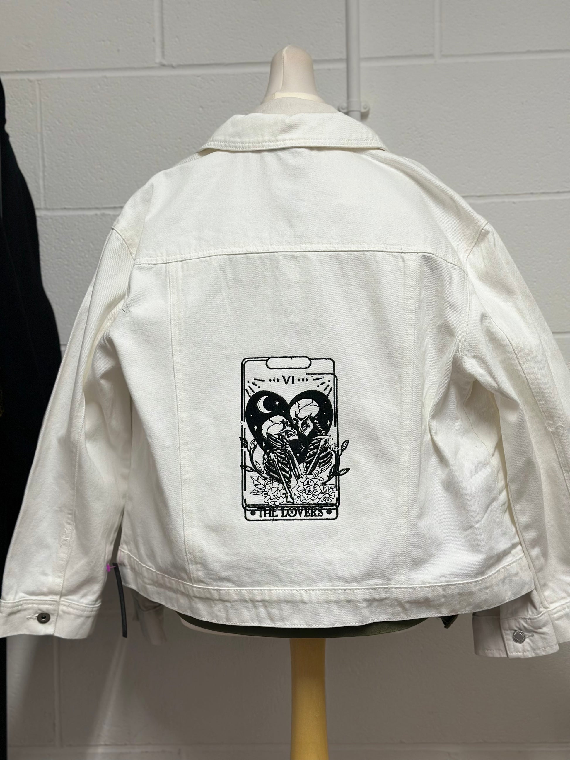 The Lovers Tarot Embroidered White Denim Jacket – Customisable